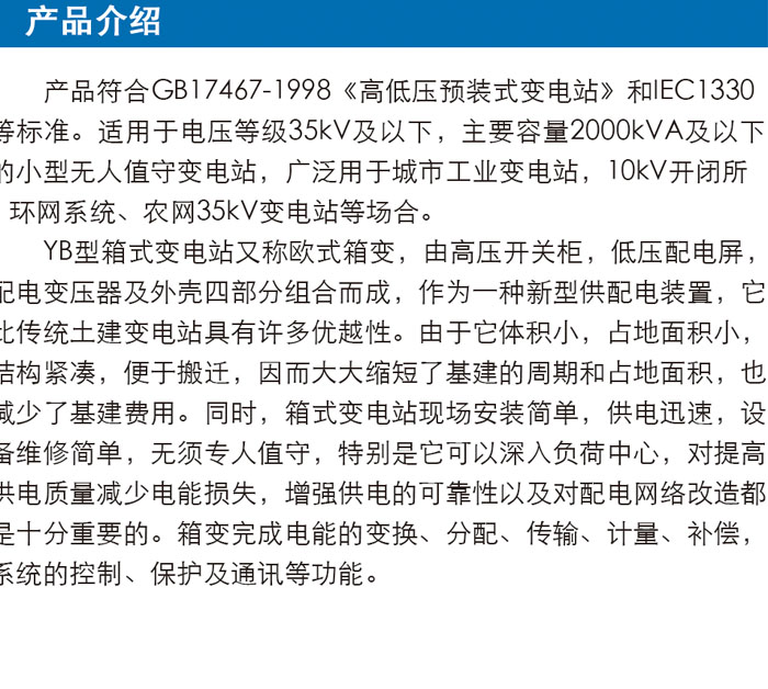 10-YB系列箱式變電站系列(歐式箱變)